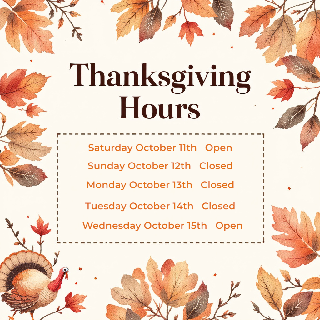 🍁 Thanksgiving Hours – Please Read! 🍁We will be closed on Thanksgiving Monday, October 13 to... Read more